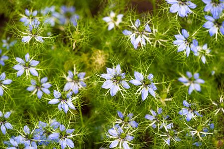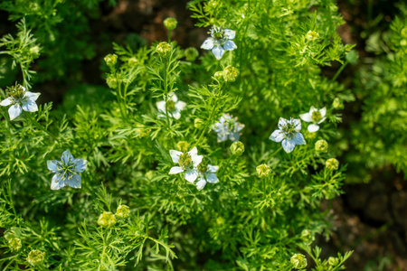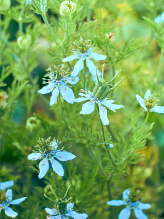 Blooming Nigella sativa in the garden.