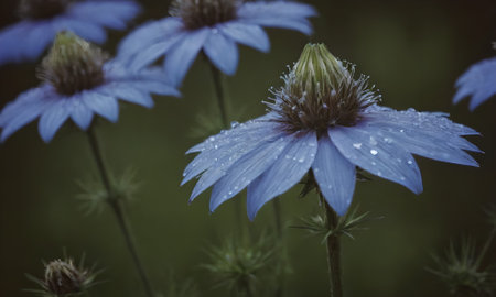 Beautiful blue flowers with drops of dew on the petals