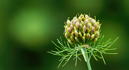 Flower of dill on green background. Close-up.
