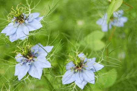 Close up of Love-in-a-mist flowers - Latin name - Nigella damascena