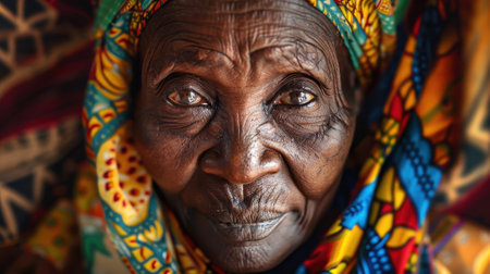 the face of an ethnic African woman in a traditional outfit, for Africa day, banner. High