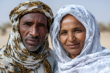 Tuareg desert people couple posing, representing ancient culture and tradition