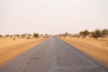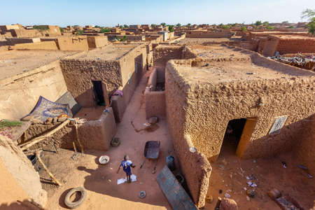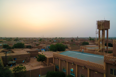 Aerial sunset panoramic view to Agadez old city at Air, Niger
