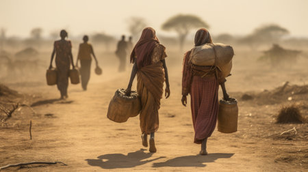 Unidentified Ethiopian people in the desert. People in Ethiopia suffer of poverty due to the unstable situation