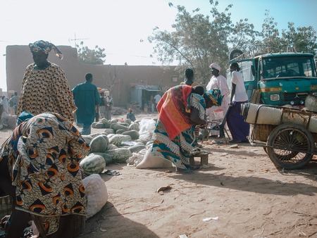 Timbuktu, Mali, Africa - February 3, 2008: People selling and buying at town market