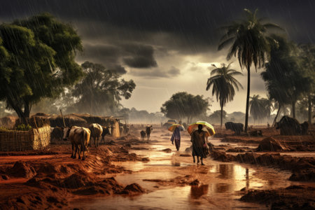 Portrait of people living in Africa, Namibia, dry desert, cows, tribal living, made with Generative AI