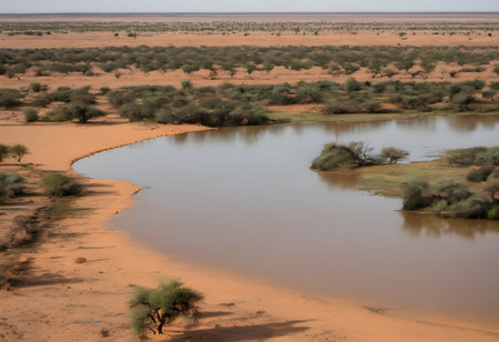 Aerial Panoramic landscape view to sahel and oasis at Dogondoutchi, Niger