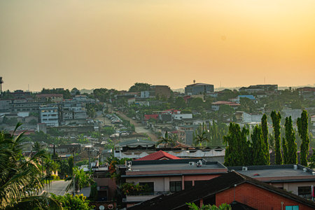 Kumasi, Ghana - April 06, 2022: Crowded African Road with Local Ghana People in Kumasi city