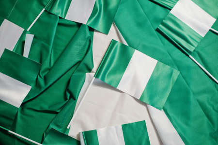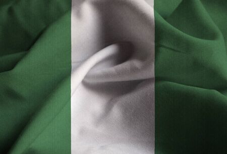 Closeup of Ruffled Nigeria Flag, Nigeria Flag Blowing in Wind