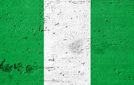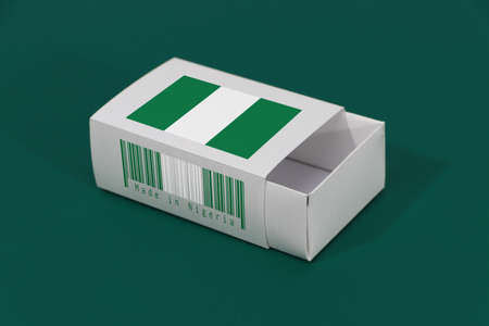 Nigeria flag on white box with barcode and the color of nation flag on green background, paper packaging for put match or products. The concept of export trading from Nigeria.