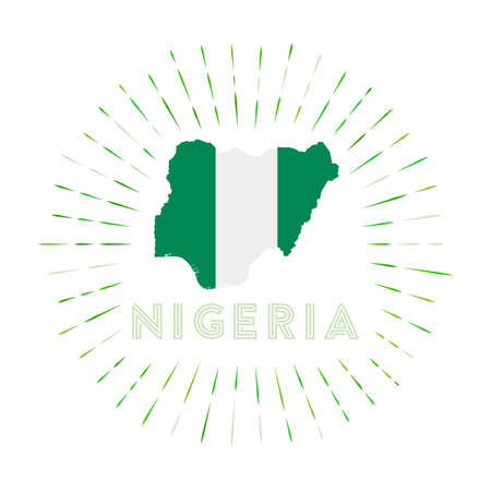 Nigeria sunburst badge. The country sign with map of Nigeria with Nigerian flag. Colorful rays around the logo. Vector illustration.