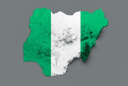 Nigeria Map Flag Shaded relief Color Height map on white Background 3d illustration