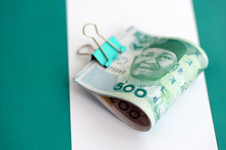 Nigerian naira currency money bills lies on flag close up. The concept of business and investment