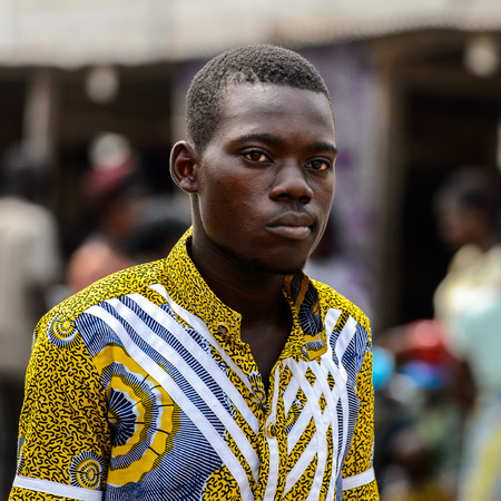 LOME, TOGO - Jan 9, 2017: Unidentified Togolese man in colored shirt walks at the Lome port. Togo people suffer of poverty due to the bad economy