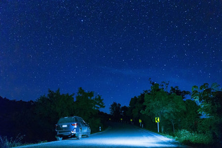many star at the night sky with the car on the road