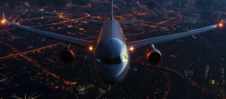 City's Guardian: Passenger Jet Patrolling the Night Sky