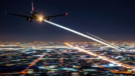 Nighttime Spectacle: Passenger Plane Over Urban Glow