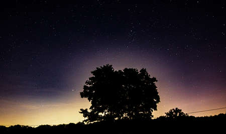 stars in the sky at night as background, silhouette of a tree in the foreground, outdoors