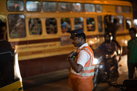 CHENAI, INDIA-FEBRUARY 9: Indian bus 9, 2013 in Chenai, India. People in the indian bus.