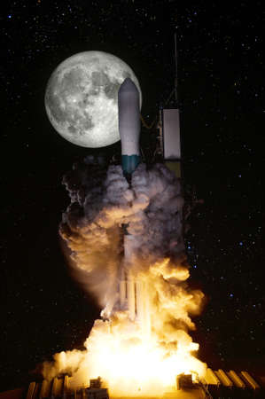 Space rocket launch earth spaceship moon.Space exploration program freight carrier vehicle.