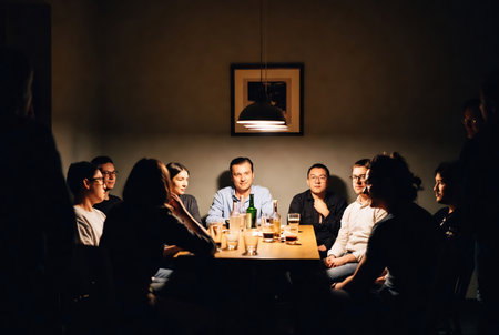 Guests sit at the set table and communicate with each other