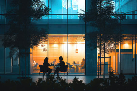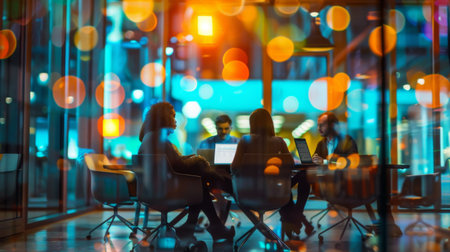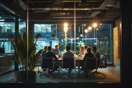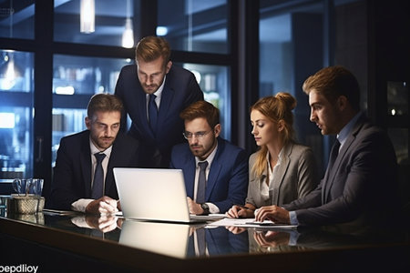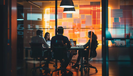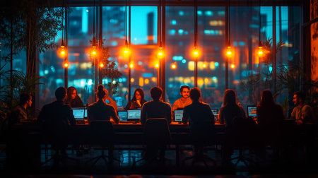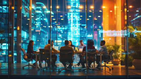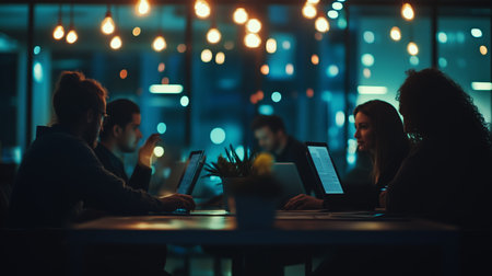 Business team working late night in a modern office environment
