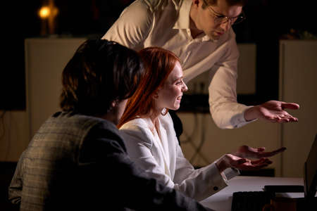 Three managers working in night office