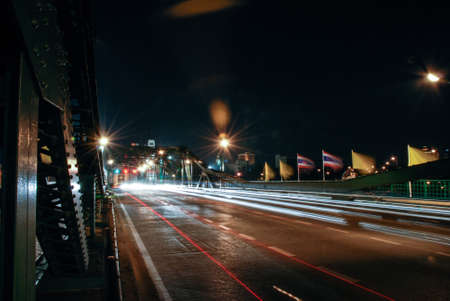 Street light painting, The tails of light made by moving cars in the night on the road.