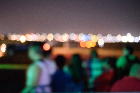 Defocused night Street lights. Bokeh street lights from cars in the city. chinese town in Bangkok Thialand