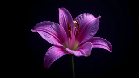 Single pink orchid blossom exudes elegance and fragility generated by artificial intelligence