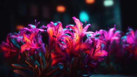 Let the vibrant neon colors of this flower artwork spark your imagination and fill your dreams with brightness. The semi-transparent glass effect adds an extra layer of depth and intrigue.