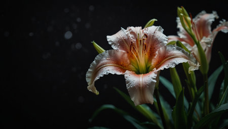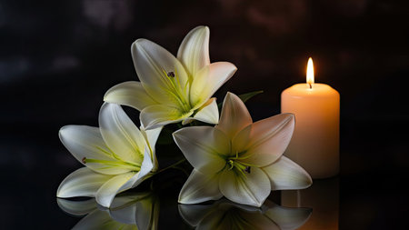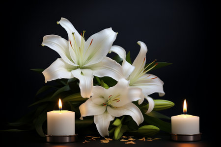 AI Generated. Funeral lily on dark black background with ample space for strategic text placement