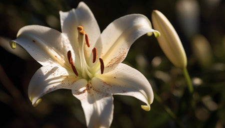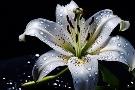 Delicate Lily flower water drops. Fresh natural botany. Generate Ai