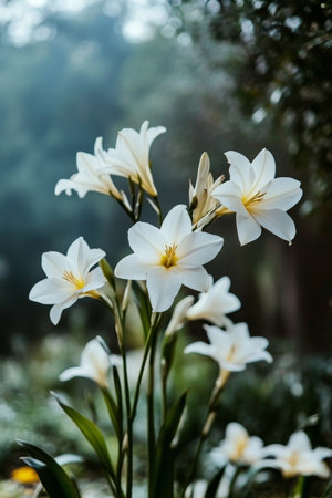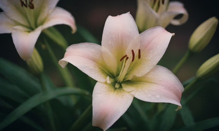 Dew-kissed Lilies: A Floral Portrait in Soft Morning Light