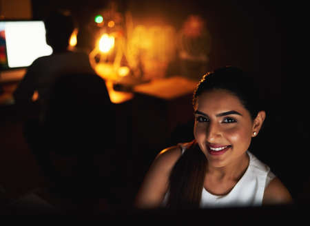Its been a night of hard work. Portrait of a young businesswoman working late in an office.