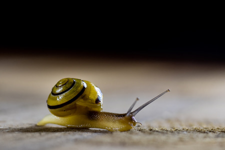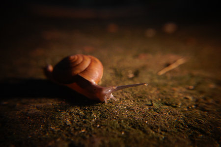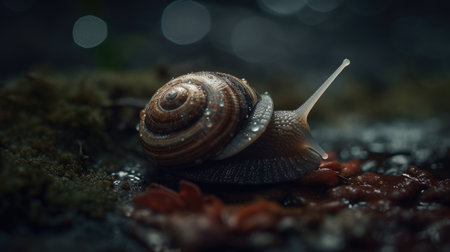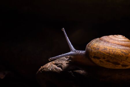 Snail on a dark background with bokeh.