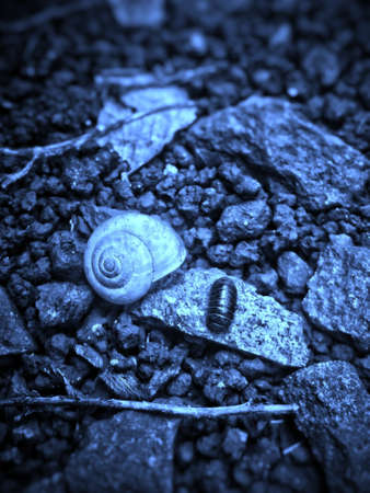 A closeup shot of a tiny snail on a road