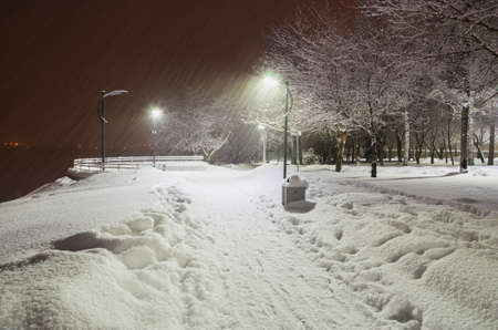 Heavy snowfall in the city Park in the evening. Russia. the city of Nizhny Tagil