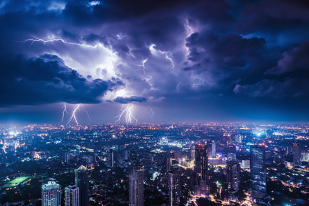 A lightning storm over a city, highlighting the power of natural phenomena.