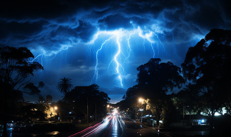 AI Generated. The fearsome beauty of a dramatic lightning storm across the night sky