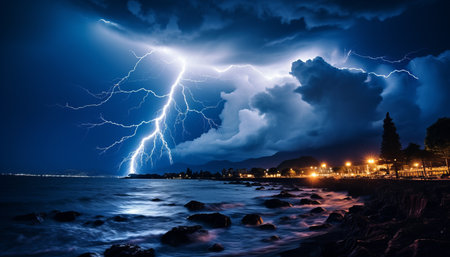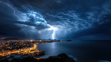 A powerful lightning storm illuminates the sky, creating a stunning display of nature's raw energy