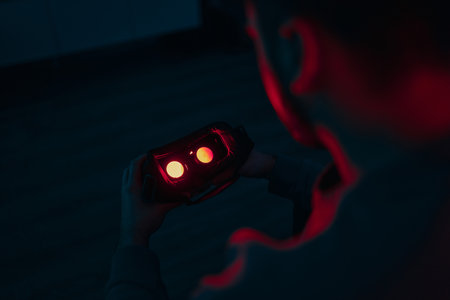 Virtual reality glasses on the street at night. Image with shallow depth of field