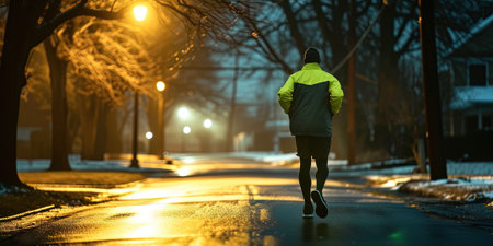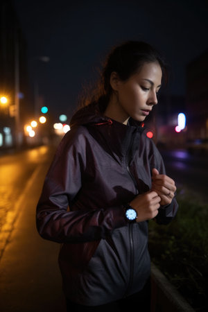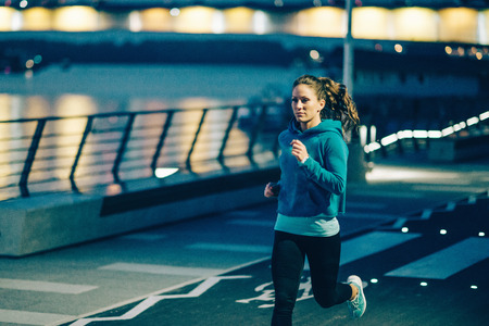 Female late-night jogging outdoors