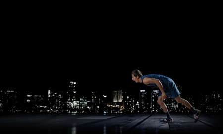 Man jogging in the city at night. Sport and active life concept.