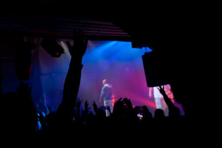 People at a concert in the light of spotlights. rock concert. Disco.