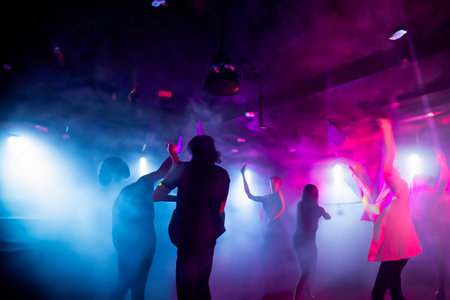 silhouettes of people dancing in nightclub on dance floor at party