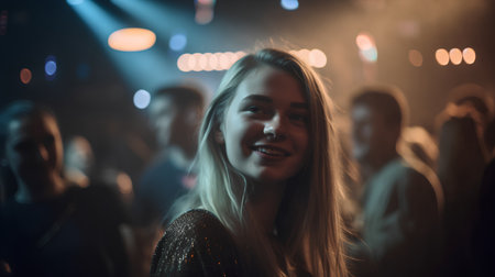 Portrait of a young woman dancing at a party in a nightclub