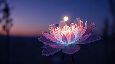 Beautiful lotus flower with the moon in the sky. Soft focus.