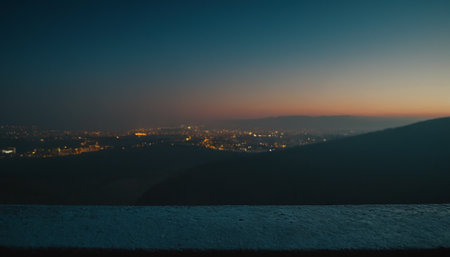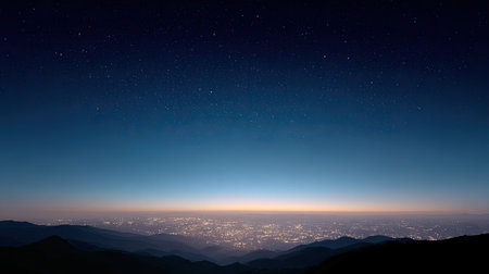 A breathtaking view of a starry night sky above a distant city, with sparkling lights visible in the serene landscape. The mountains frame the horizon, creating an inspiring and tranquil atmosphere perfect for relaxation or travel inspiration.