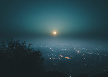 Night city view, full moon